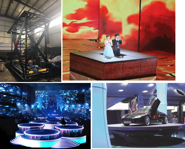 升降舞臺是在液壓升降平臺的基礎(chǔ)上,進(jìn)行設(shè)計,根據(jù)不同需求,來滿足旋轉(zhuǎn),升降等方式,實(shí)現(xiàn)不同舞臺效果。